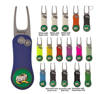 Swag Bag Item Included - Company logo on your choice of laser engraved insulated glass, spring release divot tool with ball marker or laser engraved flask for golfer gift bag stuffing.